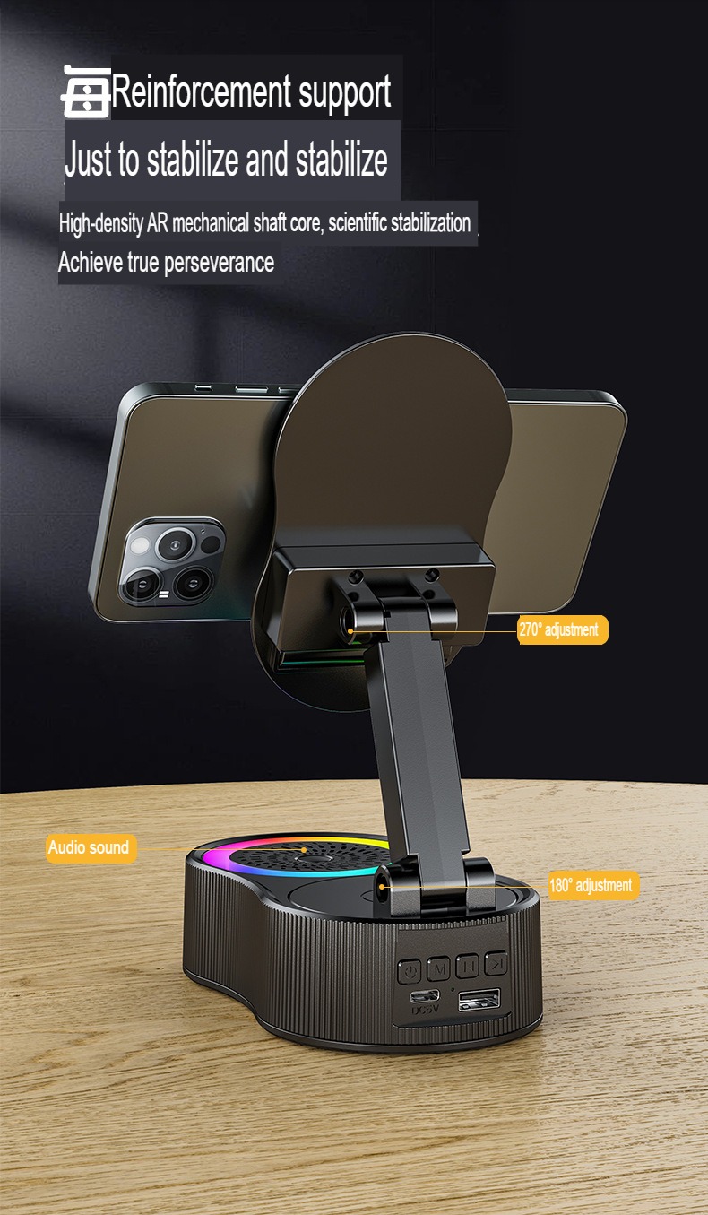"As a content creator, this phone stand is a lifesaver! I can record videos hands-free while my phone charges, and the Bluetooth speaker makes playback easy."